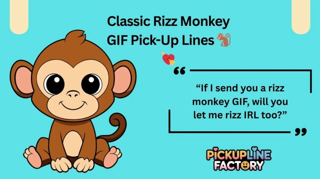 And there you go—148+ rizz monkey GIF pick up lines ranging from cute to chaotic to dangerously smooth.